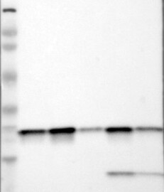 A Western blot analysis is performed on a panel of human tissues and cell lines to evaluate antibody specificity. For antibodies with unreliable result a revalidation using an over-expression lysate is performed.