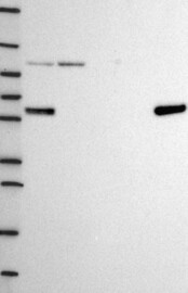 A Western blot analysis is performed on a panel of human tissues and cell lines to evaluate antibody specificity. For antibodies with unreliable result a revalidation using an over-expression lysate is performed.