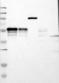 A Western blot analysis is performed on a panel of human tissues and cell lines to evaluate antibody specificity. For antibodies with unreliable result a revalidation using an over-expression lysate is performed.