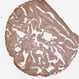 Antibody staining in the annotated cell types in the current human tissue is reported as not detected, low, medium, or high, based on conventional immunohistochemistry profiling in selected tissues. This score is based on the combination of the staining intensity and fraction of stained cells.