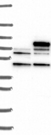 A Western blot analysis is performed on a panel of human tissues and cell lines to evaluate antibody specificity. For antibodies with unreliable result a revalidation using an over-expression lysate is performed.