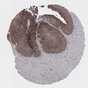 Antibody staining in the annotated cell types in the current human tissue is reported as not detected, low, medium, or high, based on conventional immunohistochemistry profiling in selected tissues. This score is based on the combination of the staining intensity and fraction of stained cells.