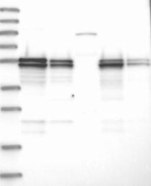 A Western blot analysis is performed on a panel of human tissues and cell lines to evaluate antibody specificity. For antibodies with unreliable result a revalidation using an over-expression lysate is performed.