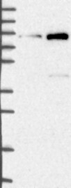 Antibody band pattern is confirmed by antibody HPA043538. Analysis performed using a standard panel of samples.