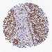 Antibody staining in the annotated cell types in the current human tissue is reported as not detected, low, medium, or high, based on conventional immunohistochemistry profiling in selected tissues. This score is based on the combination of the staining intensity and fraction of stained cells.
