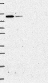 A Western blot analysis is performed on a panel of human tissues and cell lines to evaluate antibody specificity. For antibodies with unreliable result a revalidation using an over-expression lysate is performed.