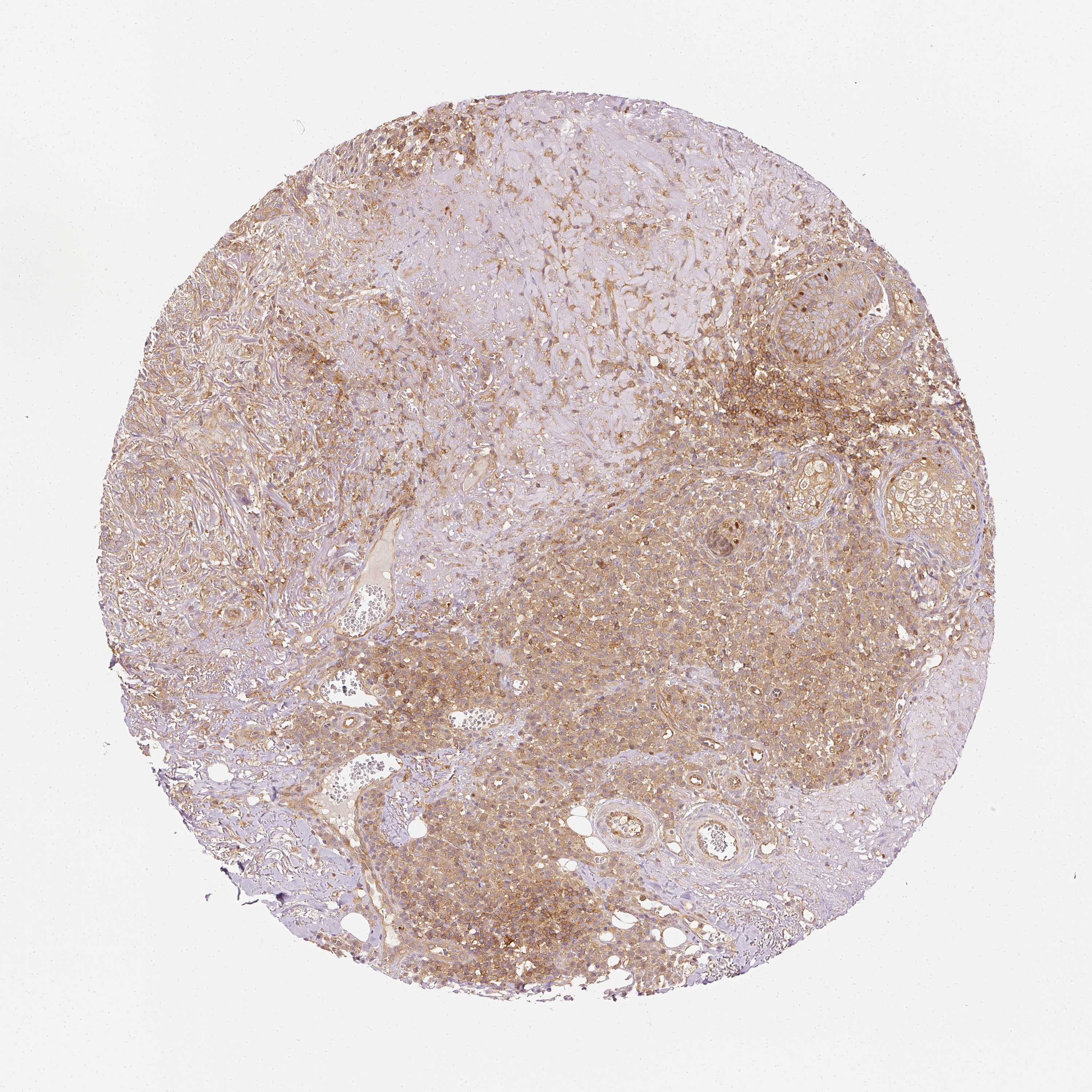Antibody staining in the annotated cell types in the current human tissue is reported as not detected, low, medium, or high, based on conventional immunohistochemistry profiling in selected tissues. This score is based on the combination of the staining intensity and fraction of stained cells.
