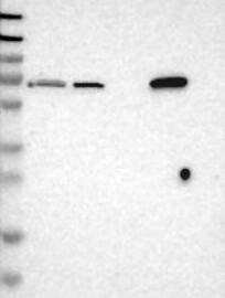 A Western blot analysis is performed on a panel of human tissues and cell lines to evaluate antibody specificity. For antibodies with unreliable result a revalidation using an over-expression lysate is performed.
