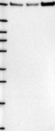 A Western blot analysis is performed on a panel of human tissues and cell lines to evaluate antibody specificity. For antibodies with unreliable result a revalidation using an over-expression lysate is performed.