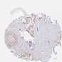 Antibody staining in the annotated cell types in the current human tissue is reported as not detected, low, medium, or high, based on conventional immunohistochemistry profiling in selected tissues. This score is based on the combination of the staining intensity and fraction of stained cells.