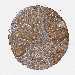 Antibody staining in the annotated cell types in the current human tissue is reported as not detected, low, medium, or high, based on conventional immunohistochemistry profiling in selected tissues. This score is based on the combination of the staining intensity and fraction of stained cells.