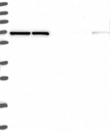A Western blot analysis is performed on a panel of human tissues and cell lines to evaluate antibody specificity. For antibodies with unreliable result a revalidation using an over-expression lysate is performed.