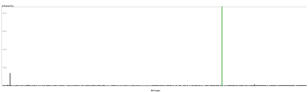The curve in blue displays the predicted antigenicity i.e. the tendency for different regions of the protein to generate an immune response, with peak regions being predicted to be more antigenic.The curve shows average values based on a sliding window approach using an in-house propensity scale. (read more).