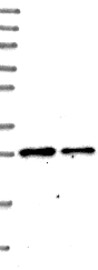 A Western blot analysis is performed on a panel of human tissues and cell lines to evaluate antibody specificity. For antibodies with unreliable result a revalidation using an over-expression lysate is performed.