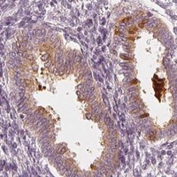 Enhanced validation results in the score Enhanced and includes two methods: Orthogonal validation and Independent antibody validation. For orthogonal validation, representative images of high and low expression are shown. For independent antibody validation, four images of each independent antibody are displayed.