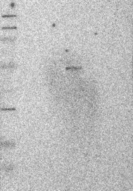 Band of predicted size in kDa (+/-20%) with additional bands present.