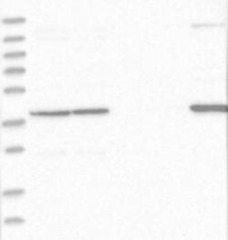 A Western blot analysis is performed on a panel of human tissues and cell lines to evaluate antibody specificity. For antibodies with unreliable result a revalidation using an over-expression lysate is performed.