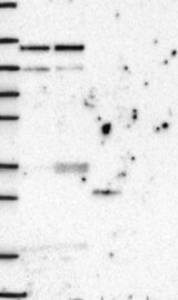 A Western blot analysis is performed on a panel of human tissues and cell lines to evaluate antibody specificity. For antibodies with unreliable result a revalidation using an over-expression lysate is performed.