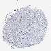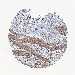 Antibody staining in the annotated cell types in the current human tissue is reported as not detected, low, medium, or high, based on conventional immunohistochemistry profiling in selected tissues. This score is based on the combination of the staining intensity and fraction of stained cells.