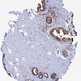 Antibody staining in the annotated cell types in the current human tissue is reported as not detected, low, medium, or high, based on conventional immunohistochemistry profiling in selected tissues. This score is based on the combination of the staining intensity and fraction of stained cells.