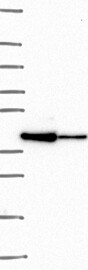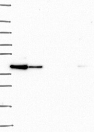 A Western blot analysis is performed on a panel of human tissues and cell lines to evaluate antibody specificity. For antibodies with unreliable result a revalidation using an over-expression lysate is performed.