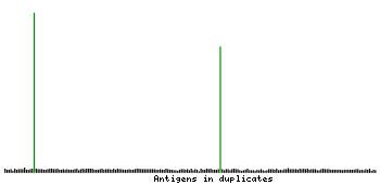 At the top of the view, the position of the antigen (identified by the corresponding HPA identifier) is shown as a green bar. A yellow triangle on the bar indicates a <100% sequence identity to the protein target.