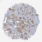 Antibody staining in the annotated cell types in the current human tissue is reported as not detected, low, medium, or high, based on conventional immunohistochemistry profiling in selected tissues. This score is based on the combination of the staining intensity and fraction of stained cells.