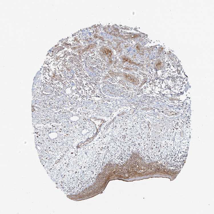 Antibody staining in the annotated cell types in the current human tissue is reported as not detected, low, medium, or high, based on conventional immunohistochemistry profiling in selected tissues. This score is based on the combination of the staining intensity and fraction of stained cells.