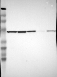 A Western blot analysis is performed on a panel of human tissues and cell lines to evaluate antibody specificity. For antibodies with unreliable result a revalidation using an over-expression lysate is performed.