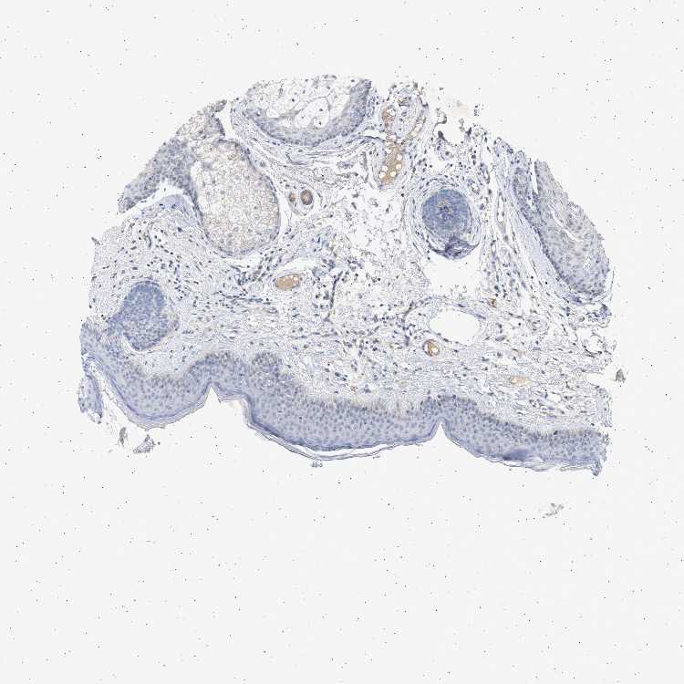 Antibody staining in the annotated cell types in the current human tissue is reported as not detected, low, medium, or high, based on conventional immunohistochemistry profiling in selected tissues. This score is based on the combination of the staining intensity and fraction of stained cells.