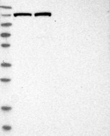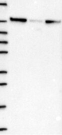 A Western blot analysis is performed on a panel of human tissues and cell lines to evaluate antibody specificity. For antibodies with unreliable result a revalidation using an over-expression lysate is performed.