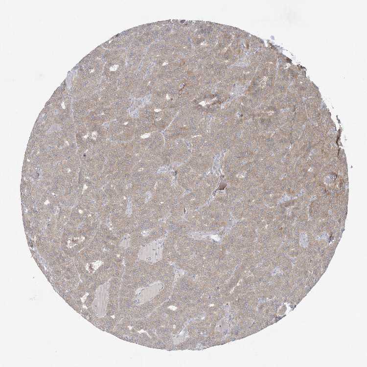 Antibody staining in the annotated cell types in the current human tissue is reported as not detected, low, medium, or high, based on conventional immunohistochemistry profiling in selected tissues. This score is based on the combination of the staining intensity and fraction of stained cells.