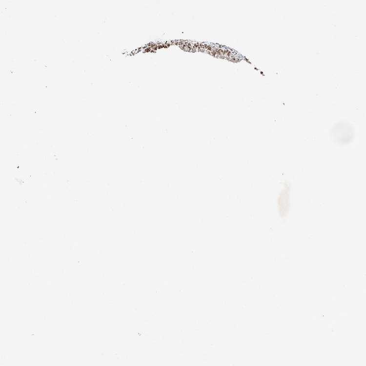 Antibody staining in the annotated cell types in the current human tissue is reported as not detected, low, medium, or high, based on conventional immunohistochemistry profiling in selected tissues. This score is based on the combination of the staining intensity and fraction of stained cells.