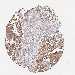 Antibody staining in the annotated cell types in the current human tissue is reported as not detected, low, medium, or high, based on conventional immunohistochemistry profiling in selected tissues. This score is based on the combination of the staining intensity and fraction of stained cells.