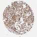 Antibody staining in the annotated cell types in the current human tissue is reported as not detected, low, medium, or high, based on conventional immunohistochemistry profiling in selected tissues. This score is based on the combination of the staining intensity and fraction of stained cells.