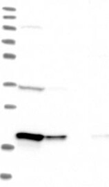 A Western blot analysis is performed on a panel of human tissues and cell lines to evaluate antibody specificity. For antibodies with unreliable result a revalidation using an over-expression lysate is performed.