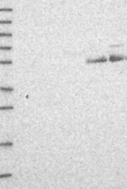 A Western blot analysis is performed on a panel of human tissues and cell lines to evaluate antibody specificity. For antibodies with unreliable result a revalidation using an over-expression lysate is performed.