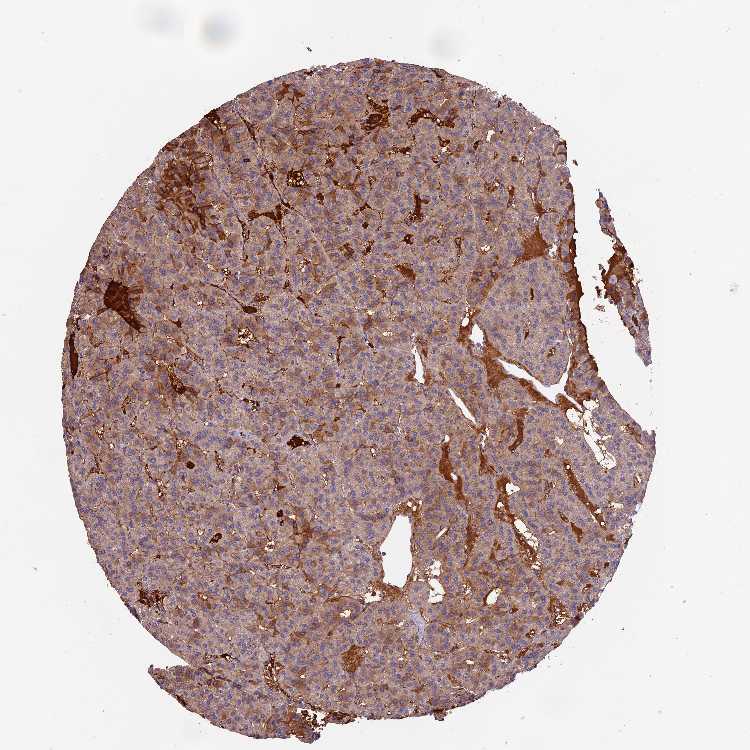 Antibody staining in the annotated cell types in the current human tissue is reported as not detected, low, medium, or high, based on conventional immunohistochemistry profiling in selected tissues. This score is based on the combination of the staining intensity and fraction of stained cells.