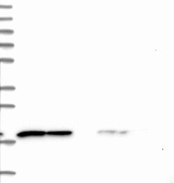 A Western blot analysis is performed on a panel of human tissues and cell lines to evaluate antibody specificity. For antibodies with unreliable result a revalidation using an over-expression lysate is performed.