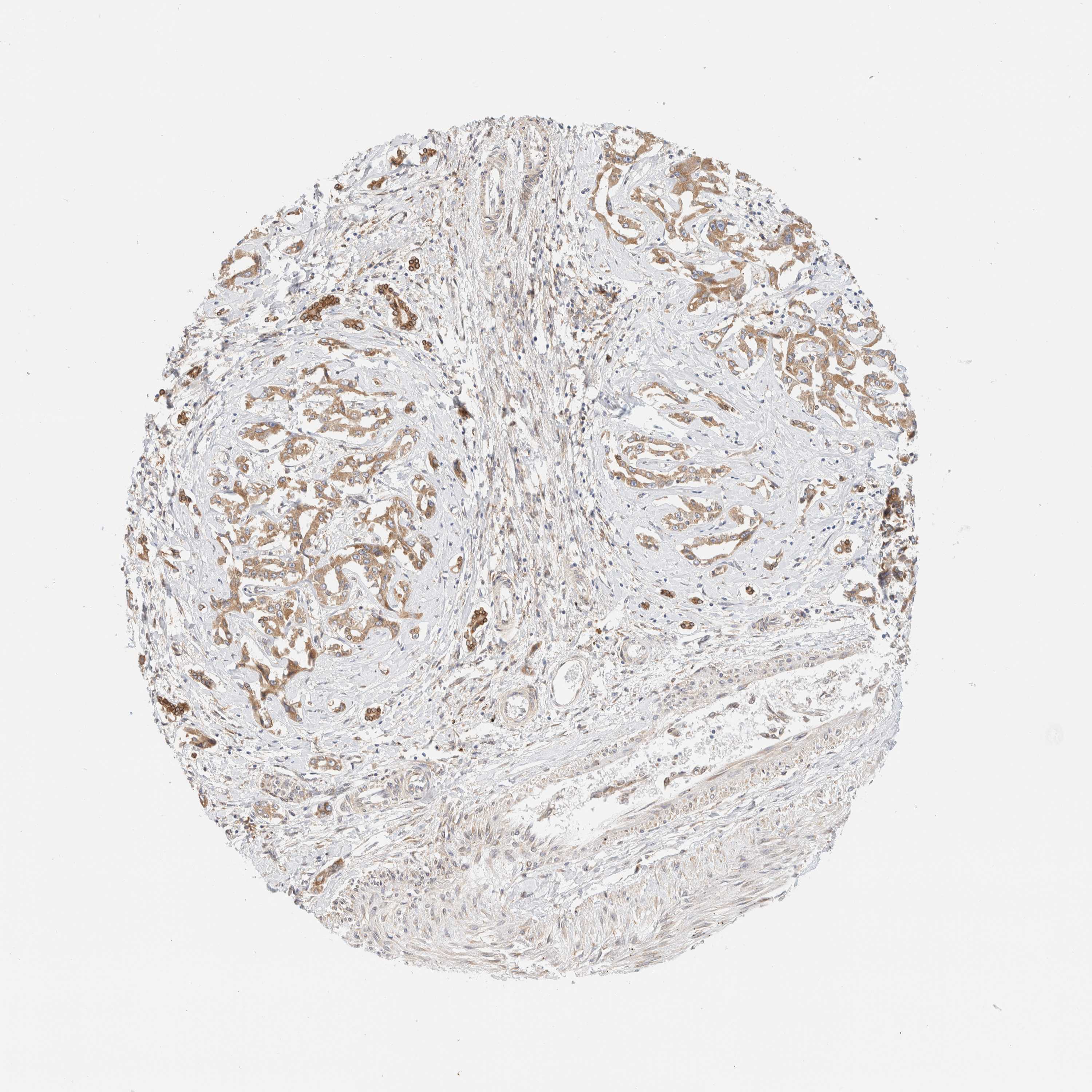 Antibody staining in the annotated cell types in the current human tissue is reported as not detected, low, medium, or high, based on conventional immunohistochemistry profiling in selected tissues. This score is based on the combination of the staining intensity and fraction of stained cells.