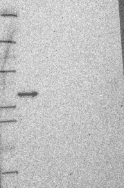 Band of predicted size in kDa (+/-20%) with additional bands present. Analysis performed using a standard panel of samples.