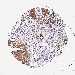 Antibody staining in the annotated cell types in the current human tissue is reported as not detected, low, medium, or high, based on conventional immunohistochemistry profiling in selected tissues. This score is based on the combination of the staining intensity and fraction of stained cells.
