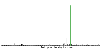 At the top of the view, the position of the antigen (identified by the corresponding HPA identifier) is shown as a green bar. A yellow triangle on the bar indicates a <100% sequence identity to the protein target.