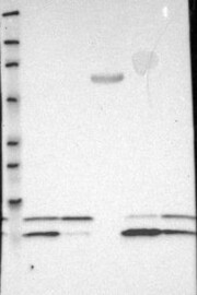 A Western blot analysis is performed on a panel of human tissues and cell lines to evaluate antibody specificity. For antibodies with unreliable result a revalidation using an over-expression lysate is performed.