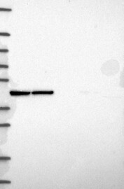 A Western blot analysis is performed on a panel of human tissues and cell lines to evaluate antibody specificity. For antibodies with unreliable result a revalidation using an over-expression lysate is performed.