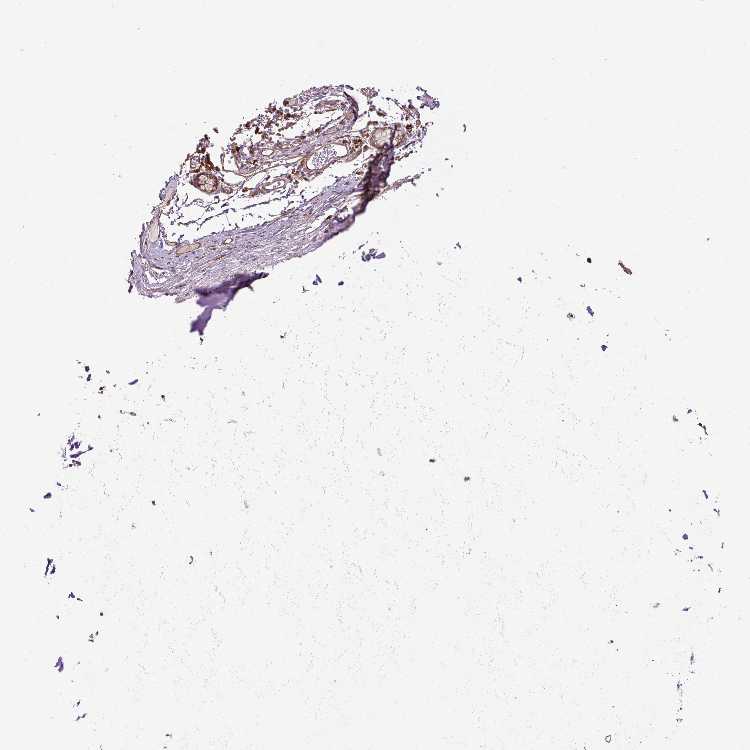 Antibody staining in the annotated cell types in the current human tissue is reported as not detected, low, medium, or high, based on conventional immunohistochemistry profiling in selected tissues. This score is based on the combination of the staining intensity and fraction of stained cells.