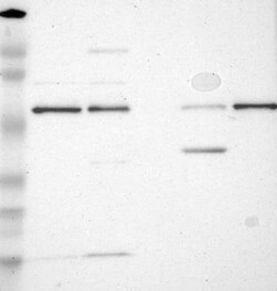A Western blot analysis is performed on a panel of human tissues and cell lines to evaluate antibody specificity. For antibodies with unreliable result a revalidation using an over-expression lysate is performed.