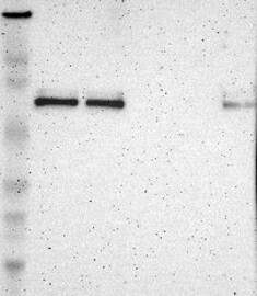A Western blot analysis is performed on a panel of human tissues and cell lines to evaluate antibody specificity. For antibodies with unreliable result a revalidation using an over-expression lysate is performed.