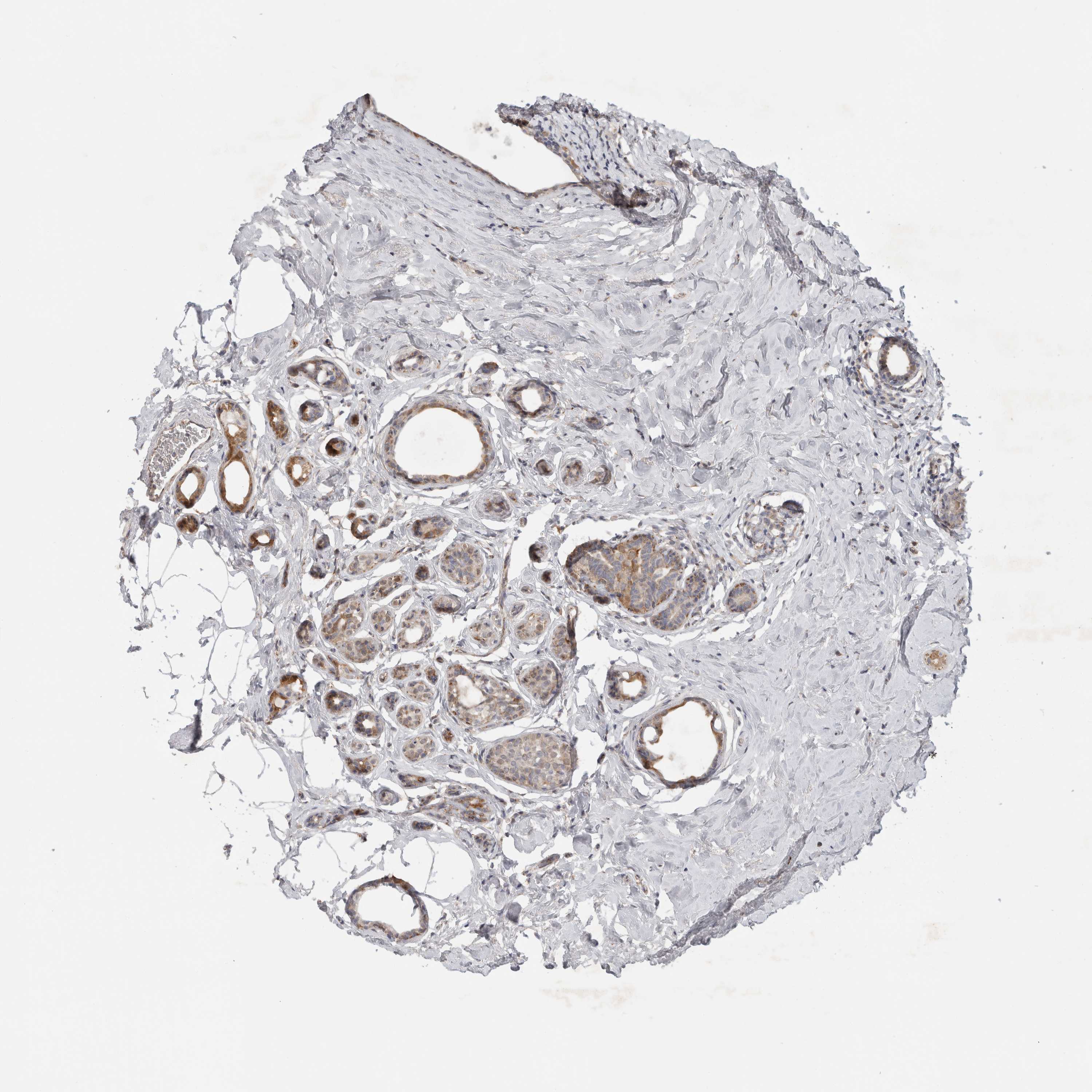 Antibody staining in the annotated cell types in the current human tissue is reported as not detected, low, medium, or high, based on conventional immunohistochemistry profiling in selected tissues. This score is based on the combination of the staining intensity and fraction of stained cells.