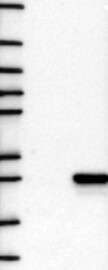 A Western blot analysis is performed on a panel of human tissues and cell lines to evaluate antibody specificity. For antibodies with unreliable result a revalidation using an over-expression lysate is performed.